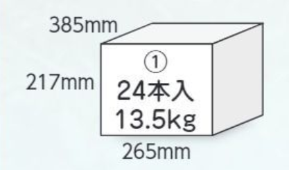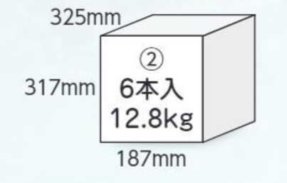 | サイズ | 2ℓ×6本, 500㎖×24本 |