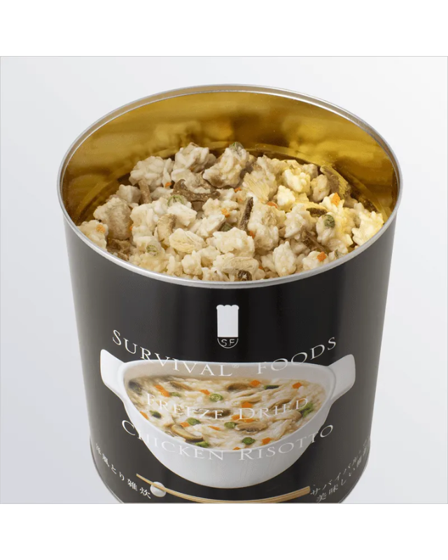 「洋風とり雑炊(大缶)」は、1缶で約10食分 作れる、長期保存ができる非常用の雑炊です。