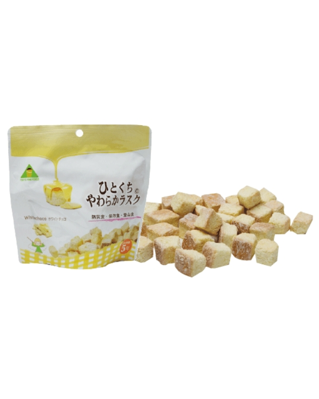 やわらかい食感とホワイトチョコのやさしい甘さが楽しめるラスクです。