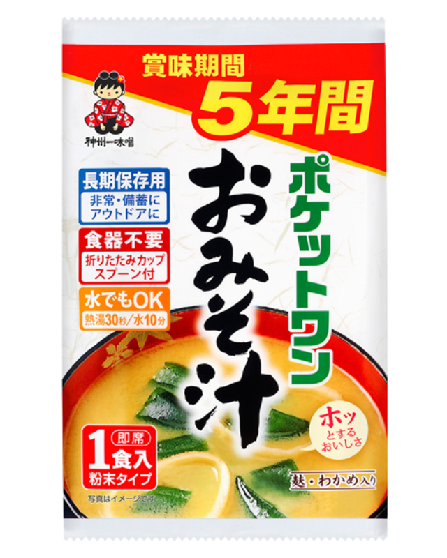 粉末タイプで手軽に楽しめる「ポケットワン おみそ汁」。