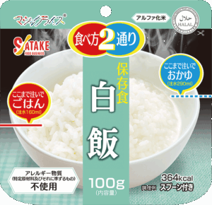 マジックライスは、水またはお湯を注ぐだけで調理できる長期保存食です。