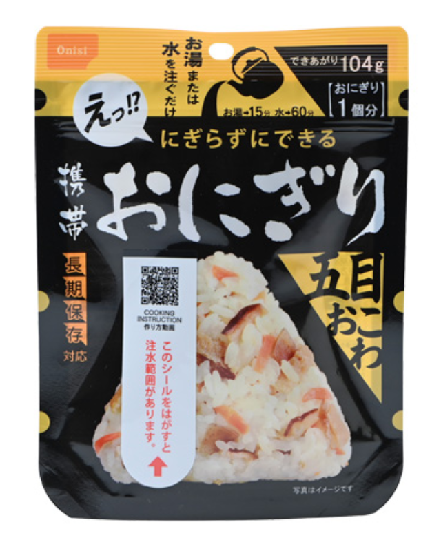 国産のもち米とうるち米を使用し、人参、ごぼう、しいたけ、こんにゃくなどの具材を加えた五目おこわタイプの携帯おにぎりです。