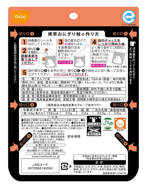 袋のままお湯や水を注いで簡単に調理でき、非常時や災害時、アウトドアの軽食としても便利です。