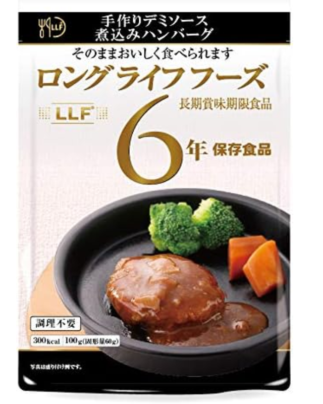温めずにそのままでもおいしく食べられる、長期保存対応の煮込みハンバーグです。