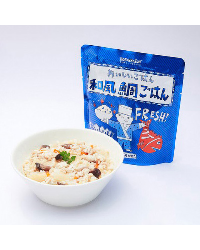 「HOZONHOZON 和風鯛ごはん」は、国産の発芽玄米に真鯛、竹の子、人参、ひらたけなどの具材を加え、