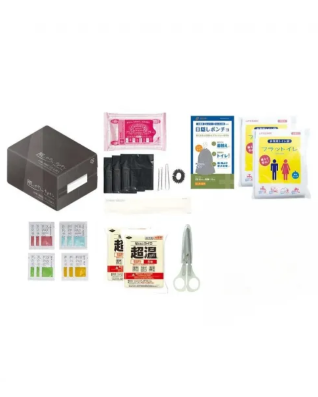 5年保存ウェットティッシュ、ハサミ、カイロなど、避難時に必要なケア用品をしっかり収納。