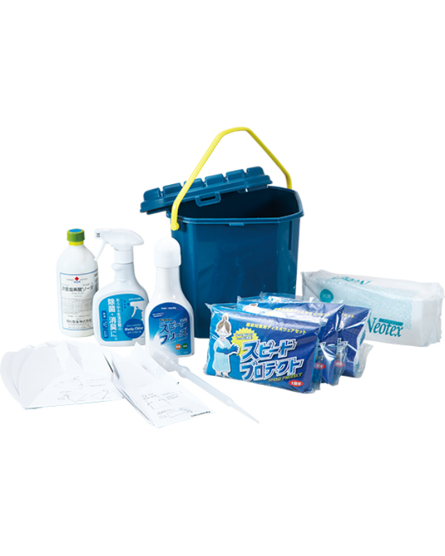 嘔吐物を安全かつ衛生的にすばやく処理できる「スピードクリーンEX」。