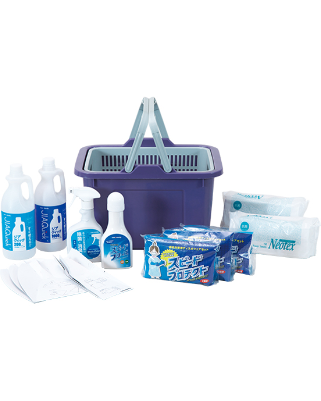 面倒な希釈作業が一切なく、すぐに嘔吐物処理ができるセットです。
