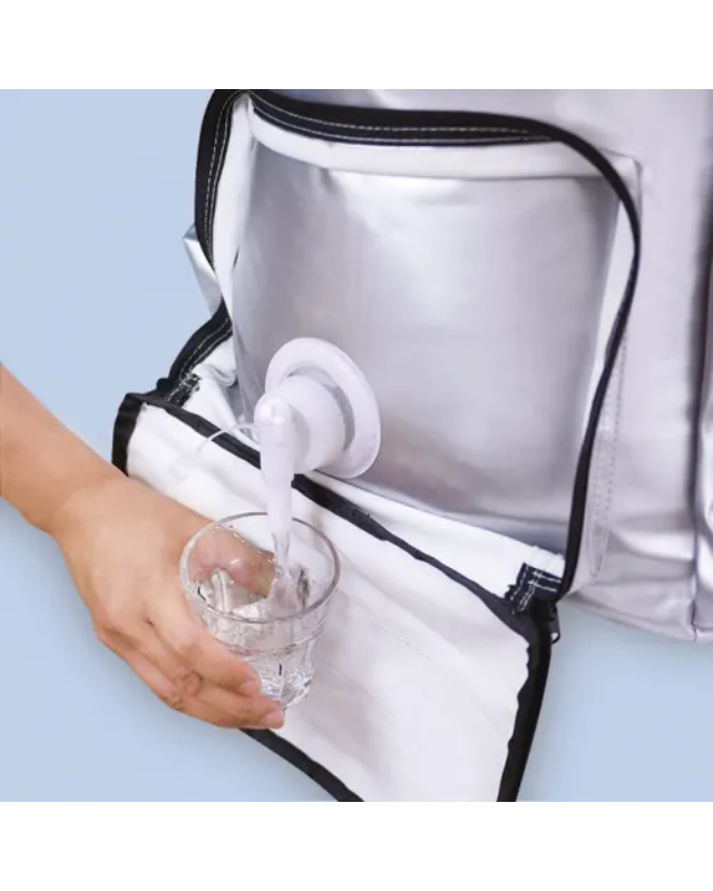付属の透明水袋は10Lまで給水でき、リュック内にしっかり収納可能。